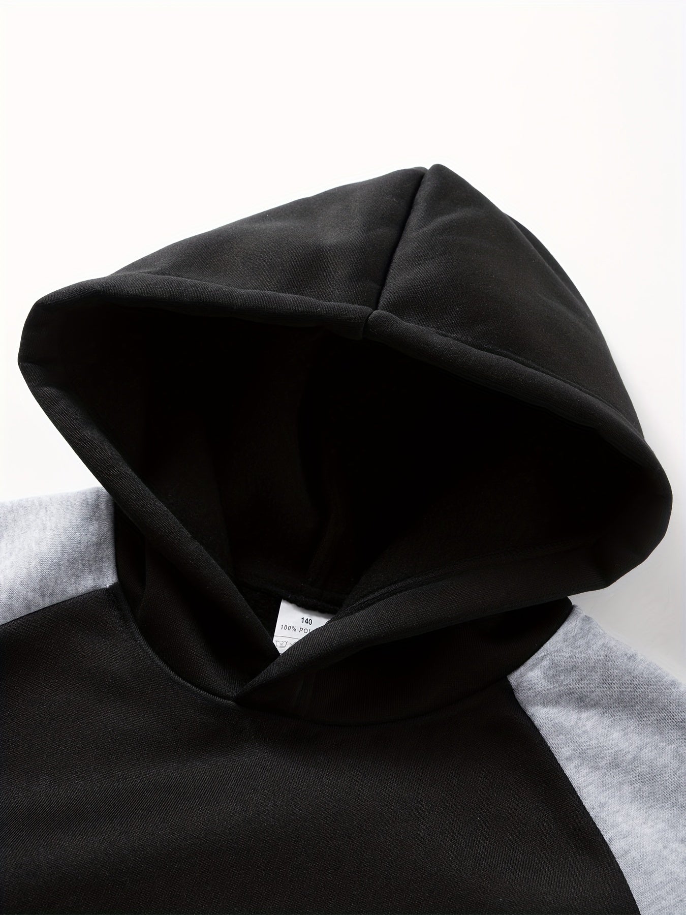 [2 Sets Contrast Hoodie] 2 Sets Classic Contrast Color Splicing Hoodie and Pants | Fashionable Casual Sports Suit for Boys and Girls | Comfortable Children's Daily Wear with Velvet in Autumn and Winter