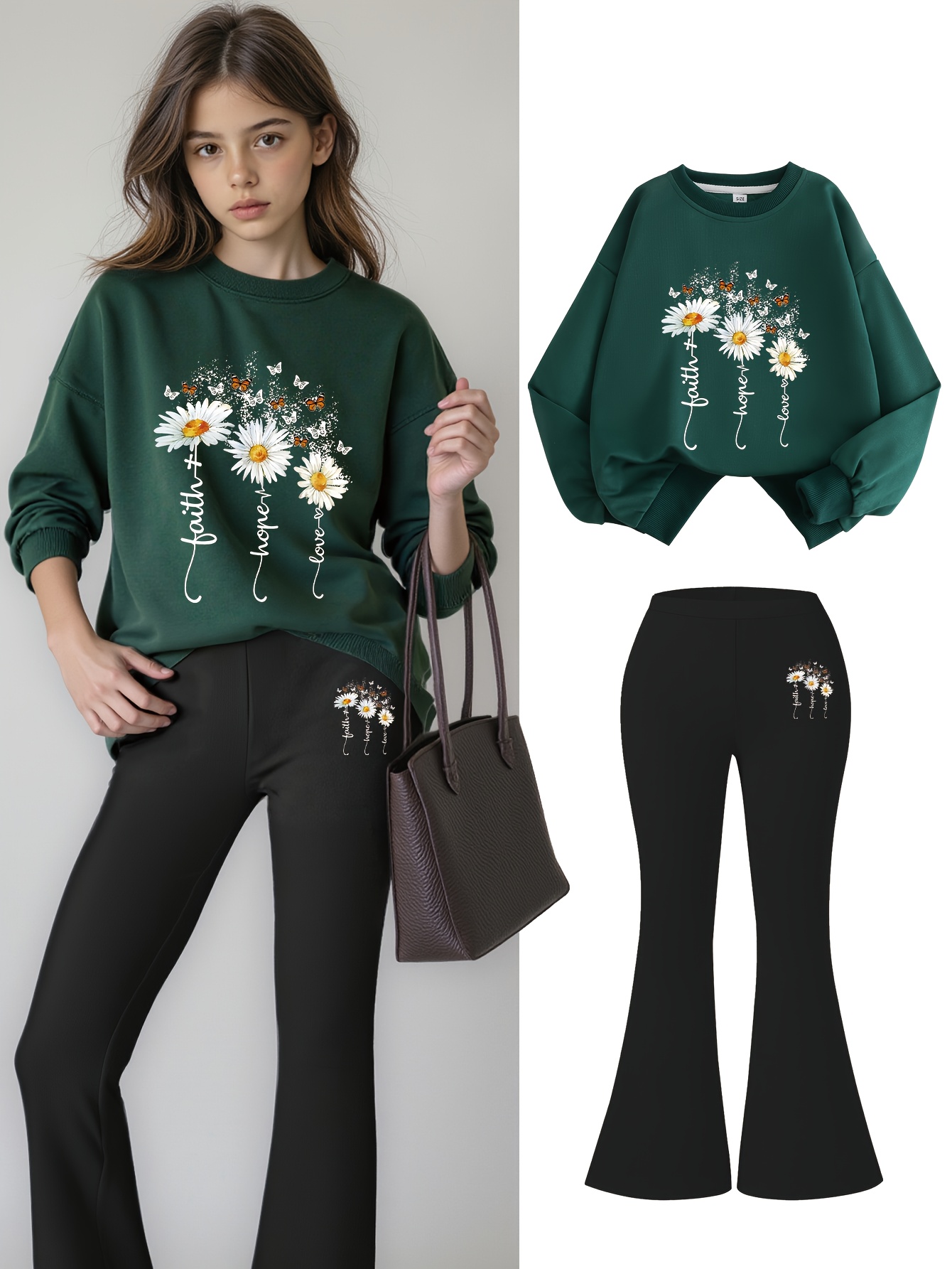 2pcs Girls' Fashion Sweatshirt + Flare Pants Casual Style | Letter Print Design | Home Leisure Autumn Fashion Set for Kids, Perfect for Outdoor