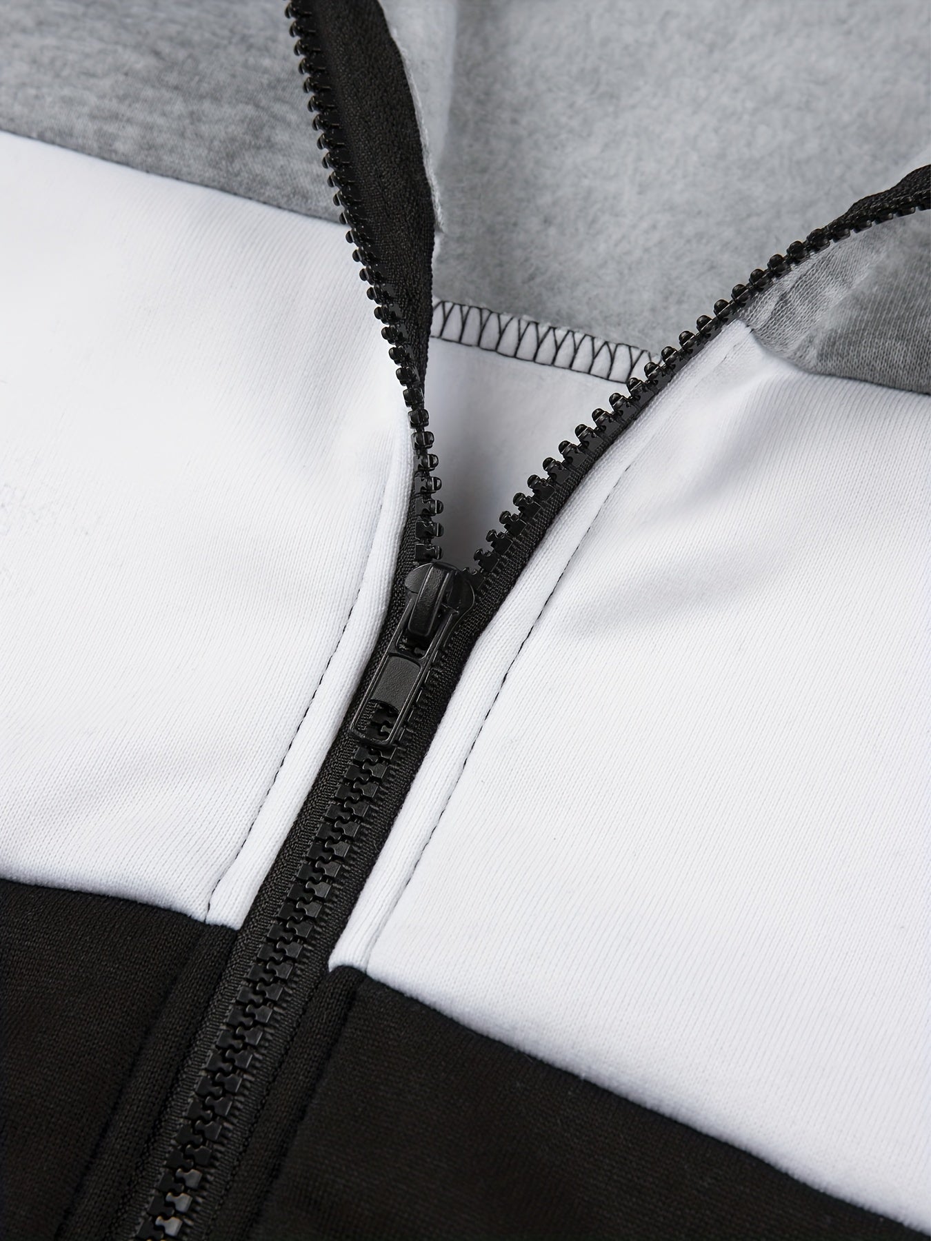3pcs Boys' Color Block Zip-Up Hoodie & Jogger Set - Cozy Fleece-Lined Casual Outfit for Fall/Winter, Beige/Brown, Black/White, Green/Gray, Elastic Waistband, Machine Washable, Jogging Suits, Perfect for Outdoor