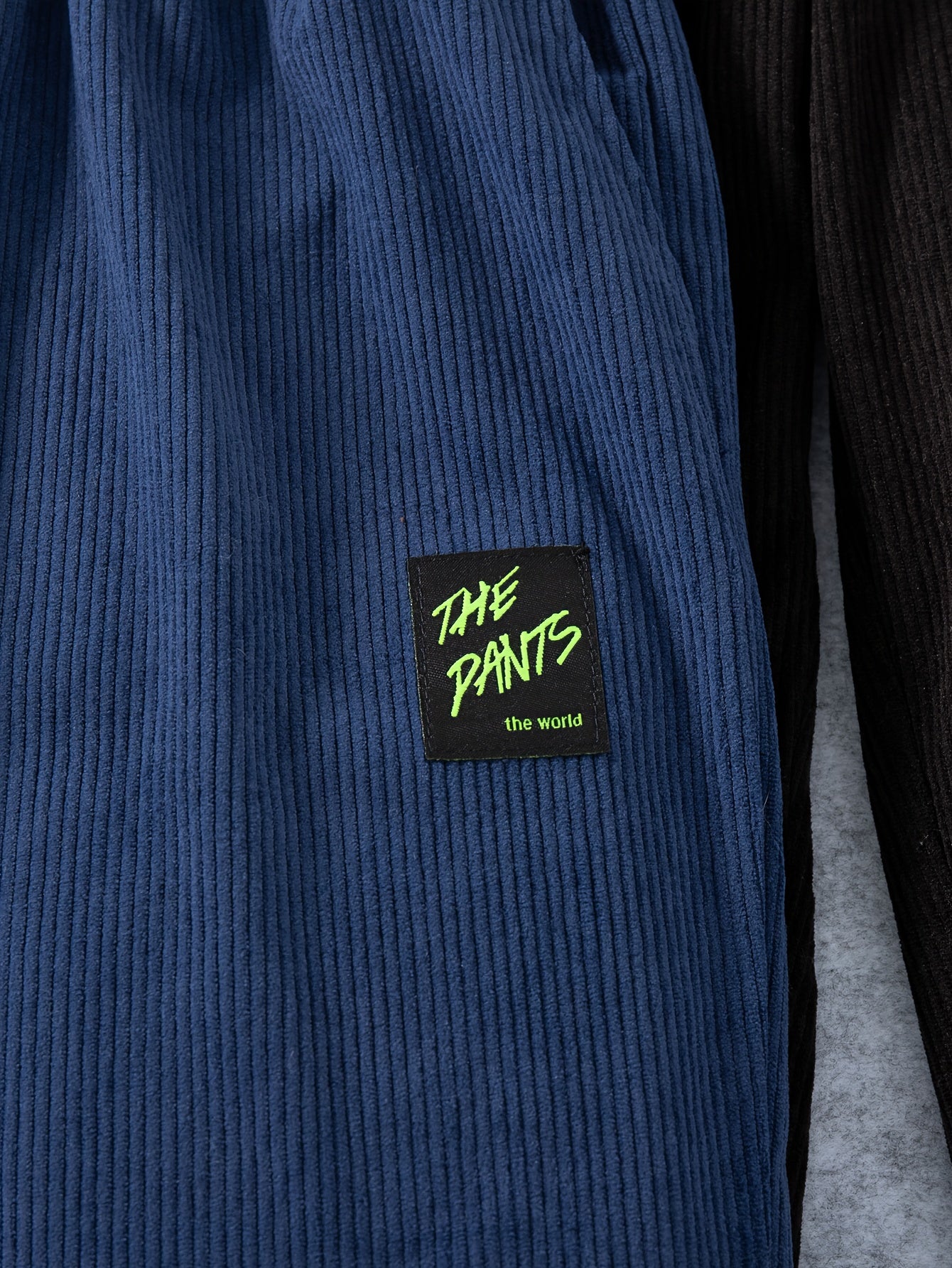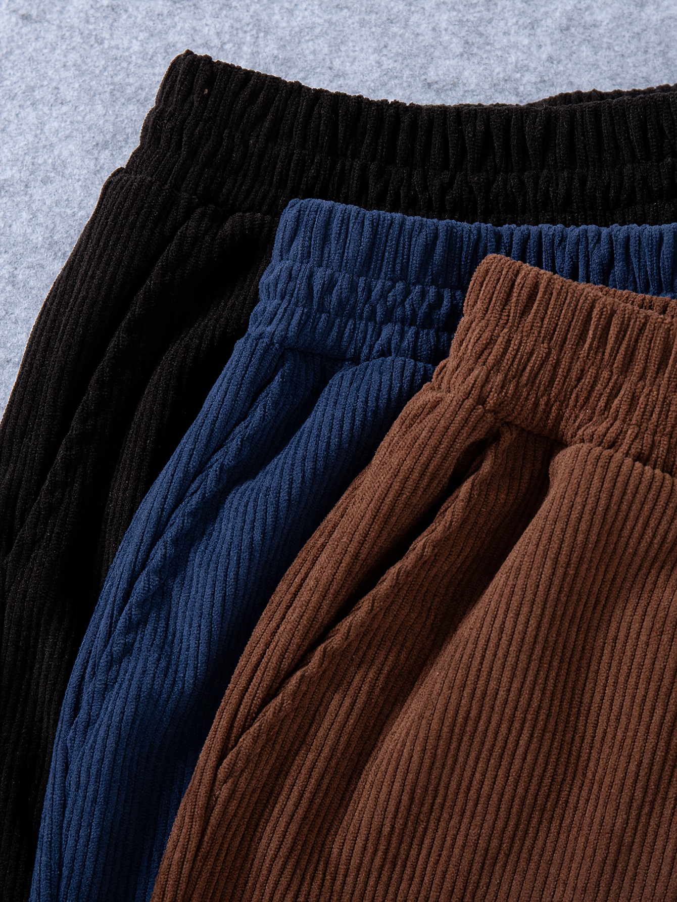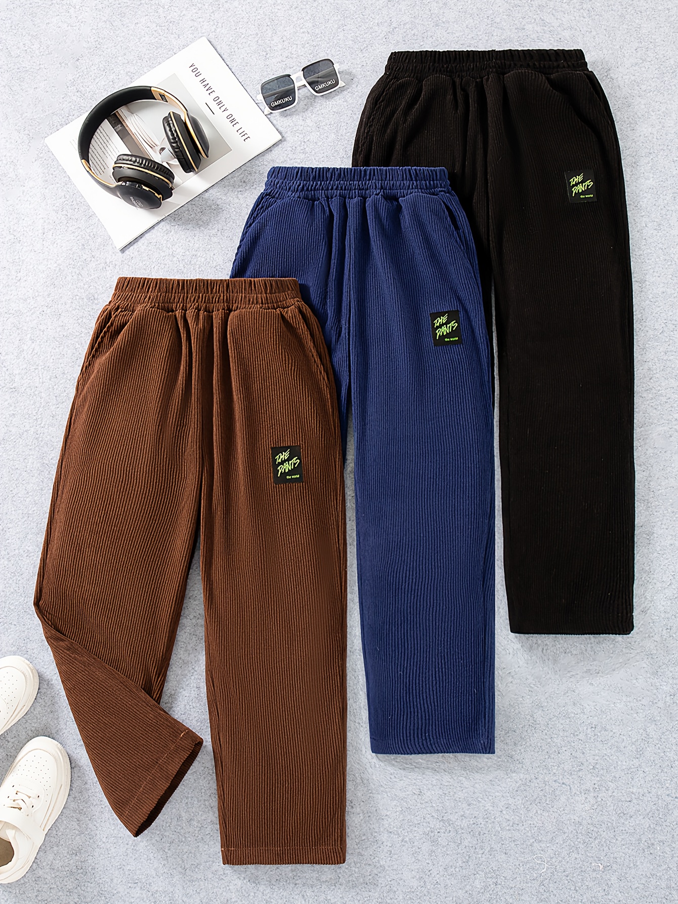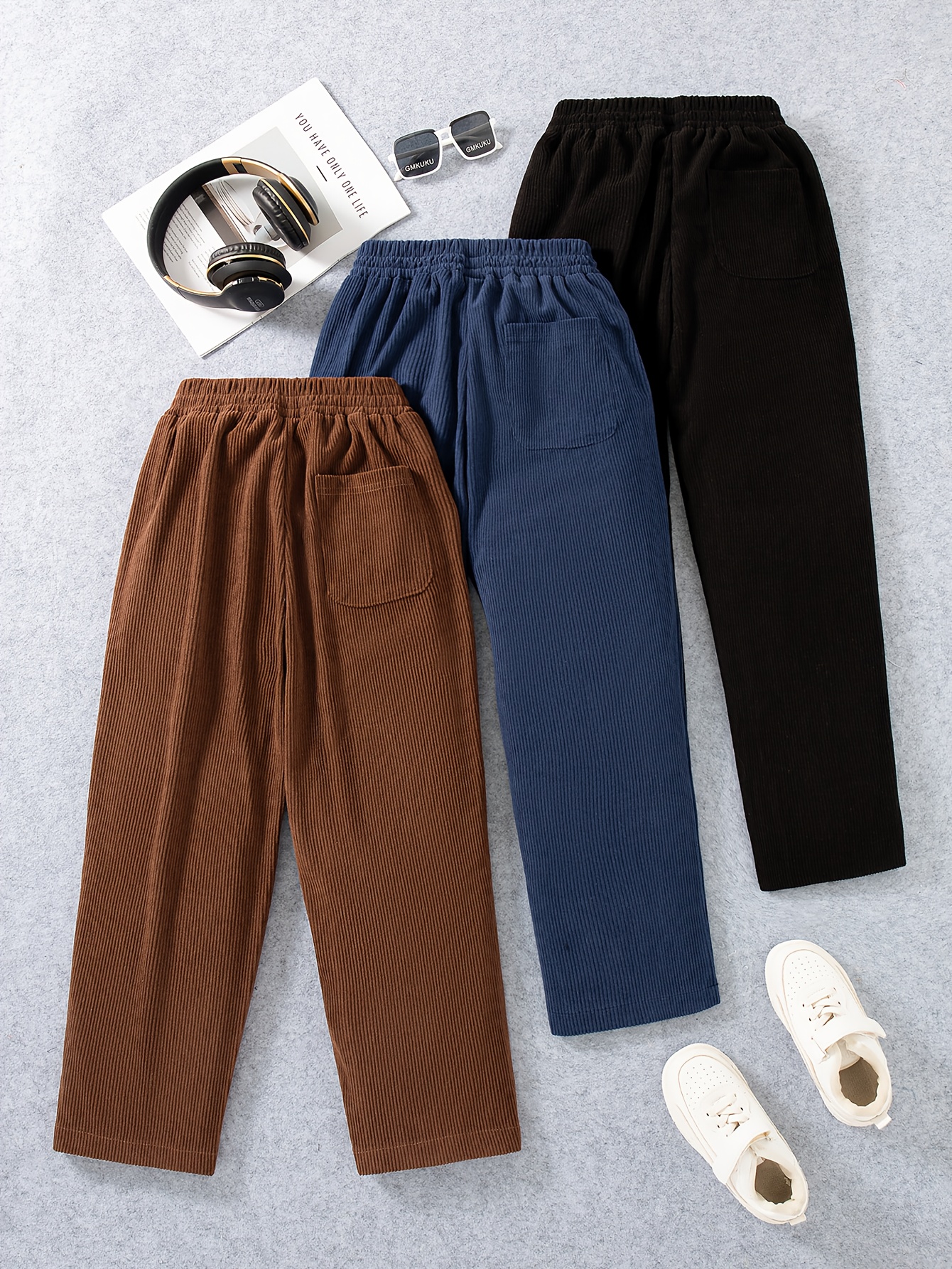 3pcs Boys' Corduroy Pants - Thick Winter Warm Loose-Fit Soft Straight-Leg Elastic Waist Casual Outdoor Pants with Pocket Details, Machine Washable Corduroy Trousers for Teen Boys (Brown/Navy/Black) - Autumn & Winter Clothing,