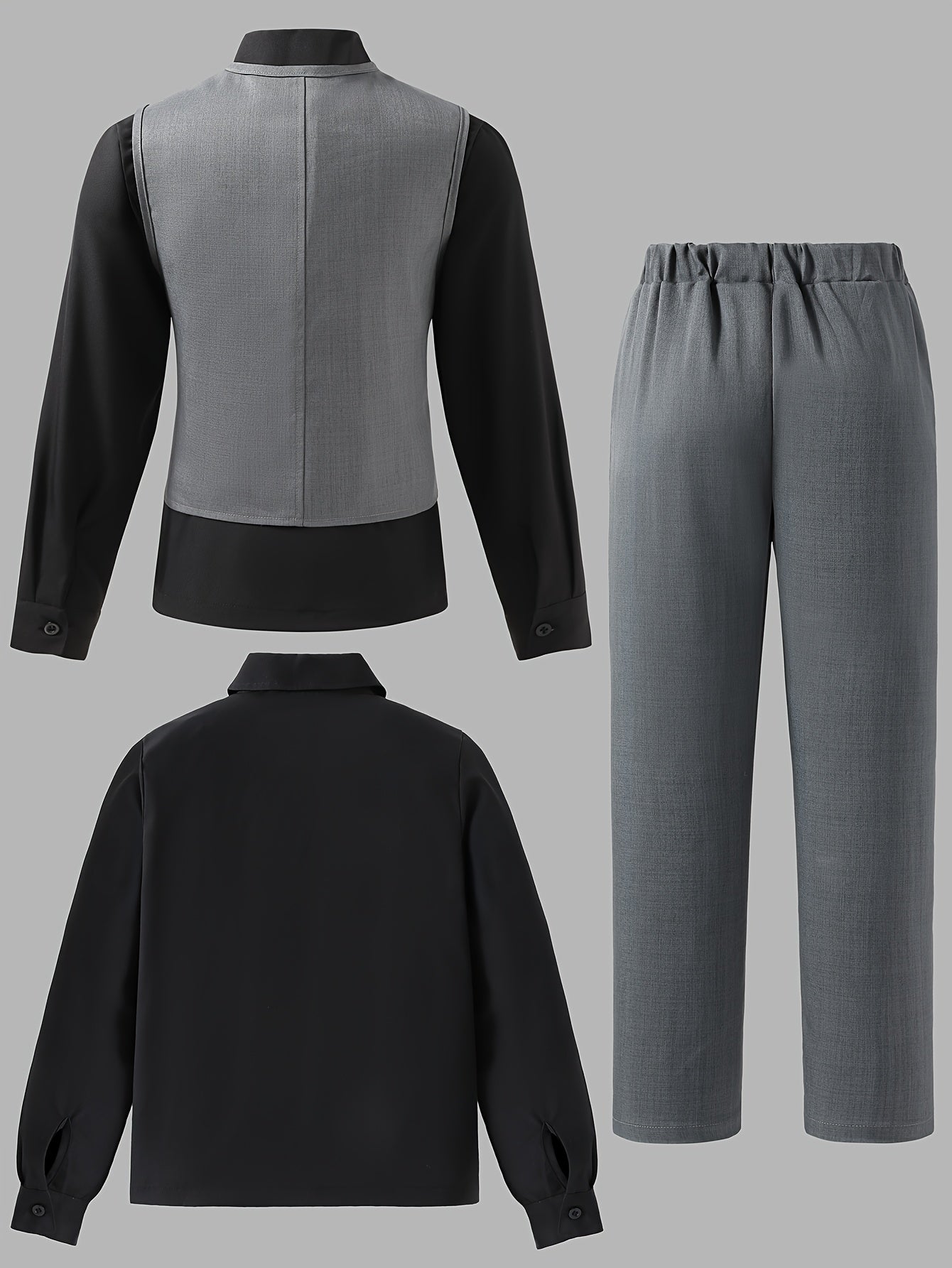 3pcs Formal Suit for Teens - Dark Gray Business Attire with Notch Lapel Blazer, Dress Shirt & Dress Pants - Button-Front Closure, Non-Stretch Fabric - Formal Events, Weddings, Interviews - Elegant Teen Formal Wear, Teen Boy D