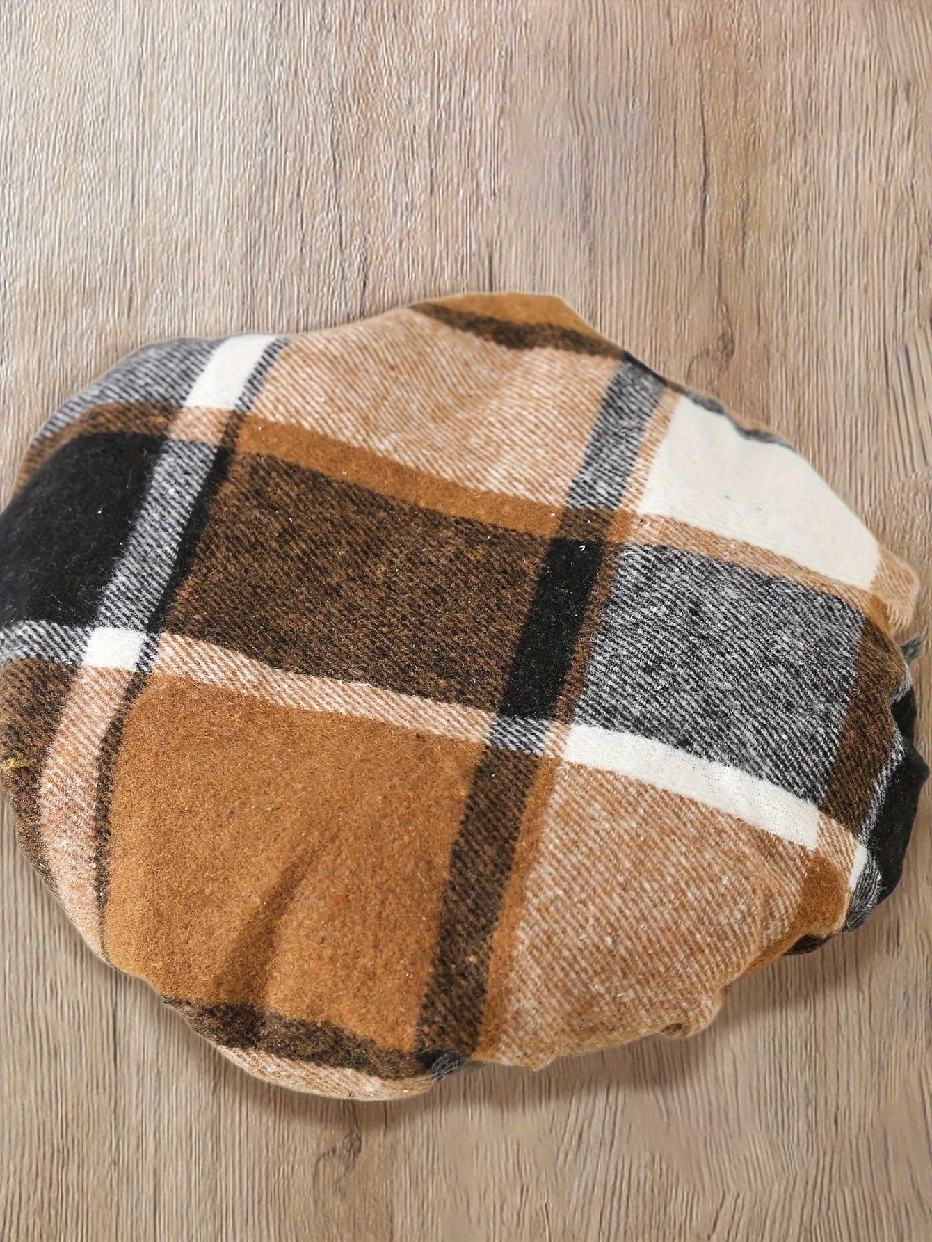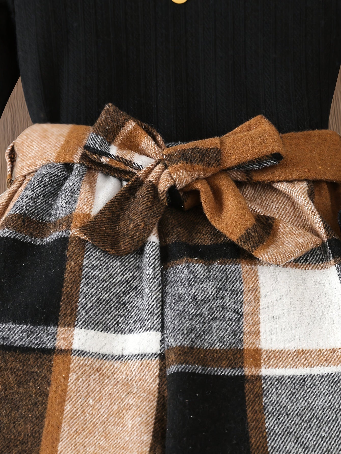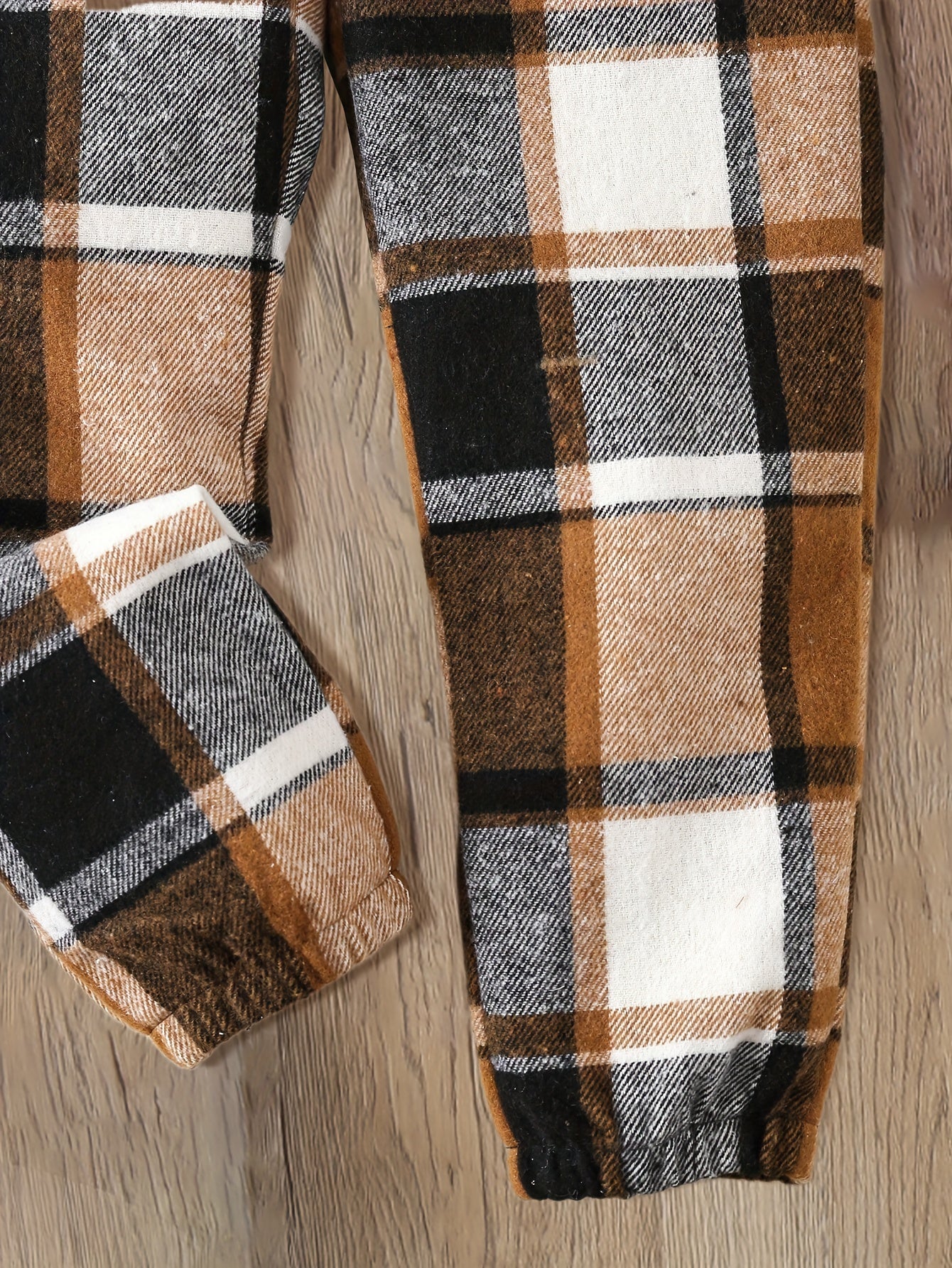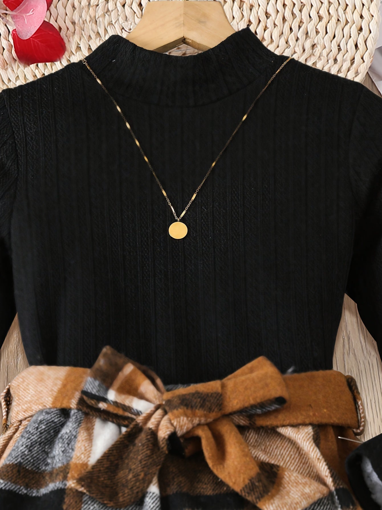 3pcs Girls' Spring/Autumn Casual Fashion Outfit - Solid Color Ribbed Crew Neck Long Sleeve Top, Two-Tone Plaid Pattern Elastic Waist Slimming Pants, Matching Hat, Comfortable Soft Versatile Streetwear for Youngsters and Teens