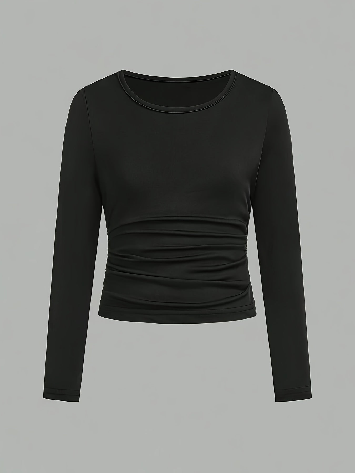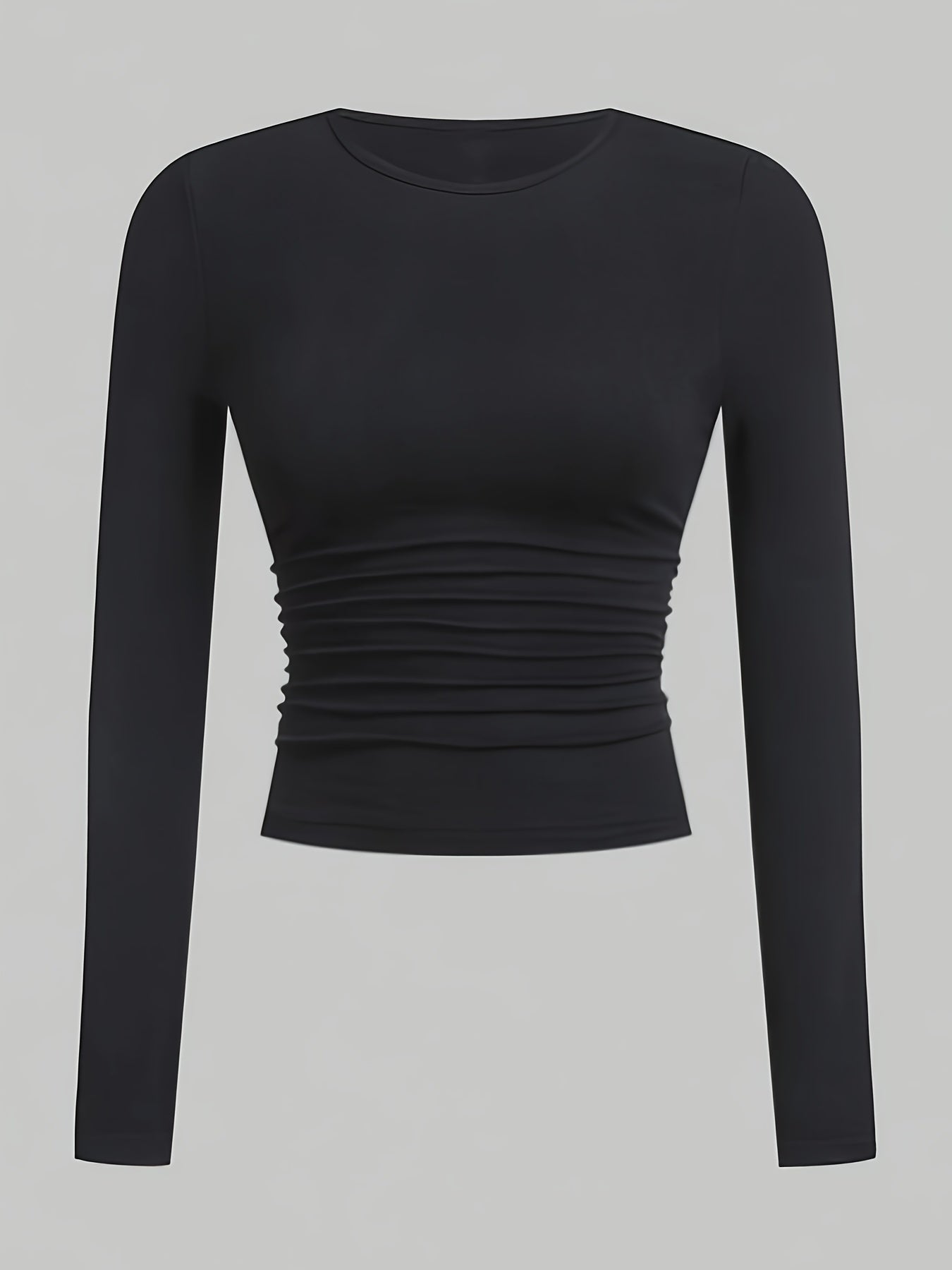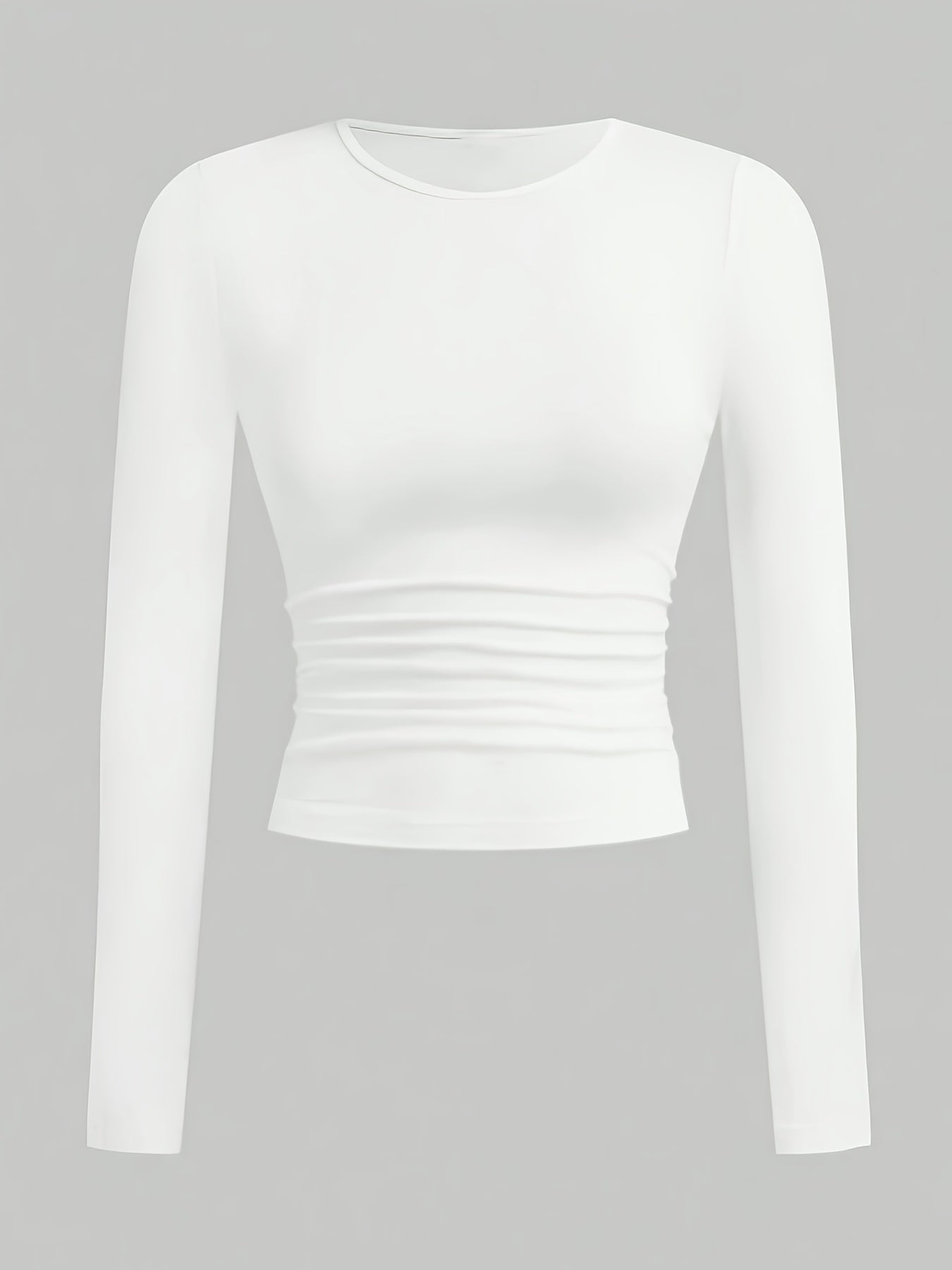 4pcs Girls' Ruffled Long Sleeve T-Shirts - 3pcs Round Neck Slim Fit Knit Tops, Medium Stretch Solid Color Casual Tees for Spring Summer Fall, Versatile Layering & Casual Attire, Shirts for Girls, Seasonal Fashion, Ruffled Sle