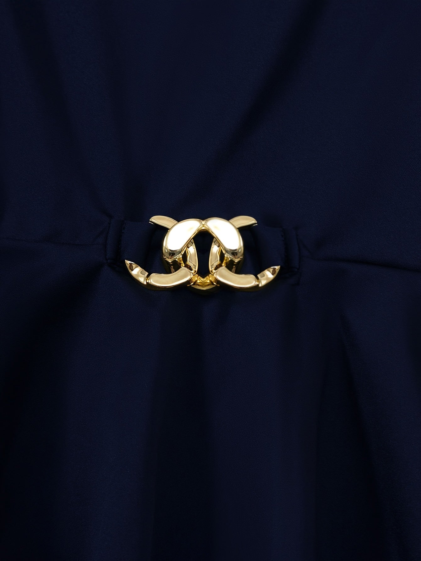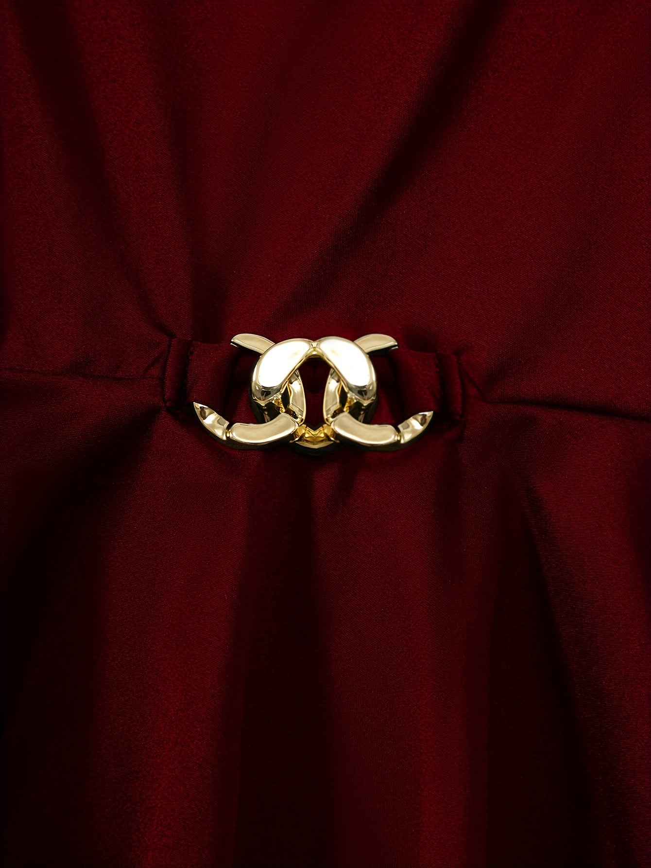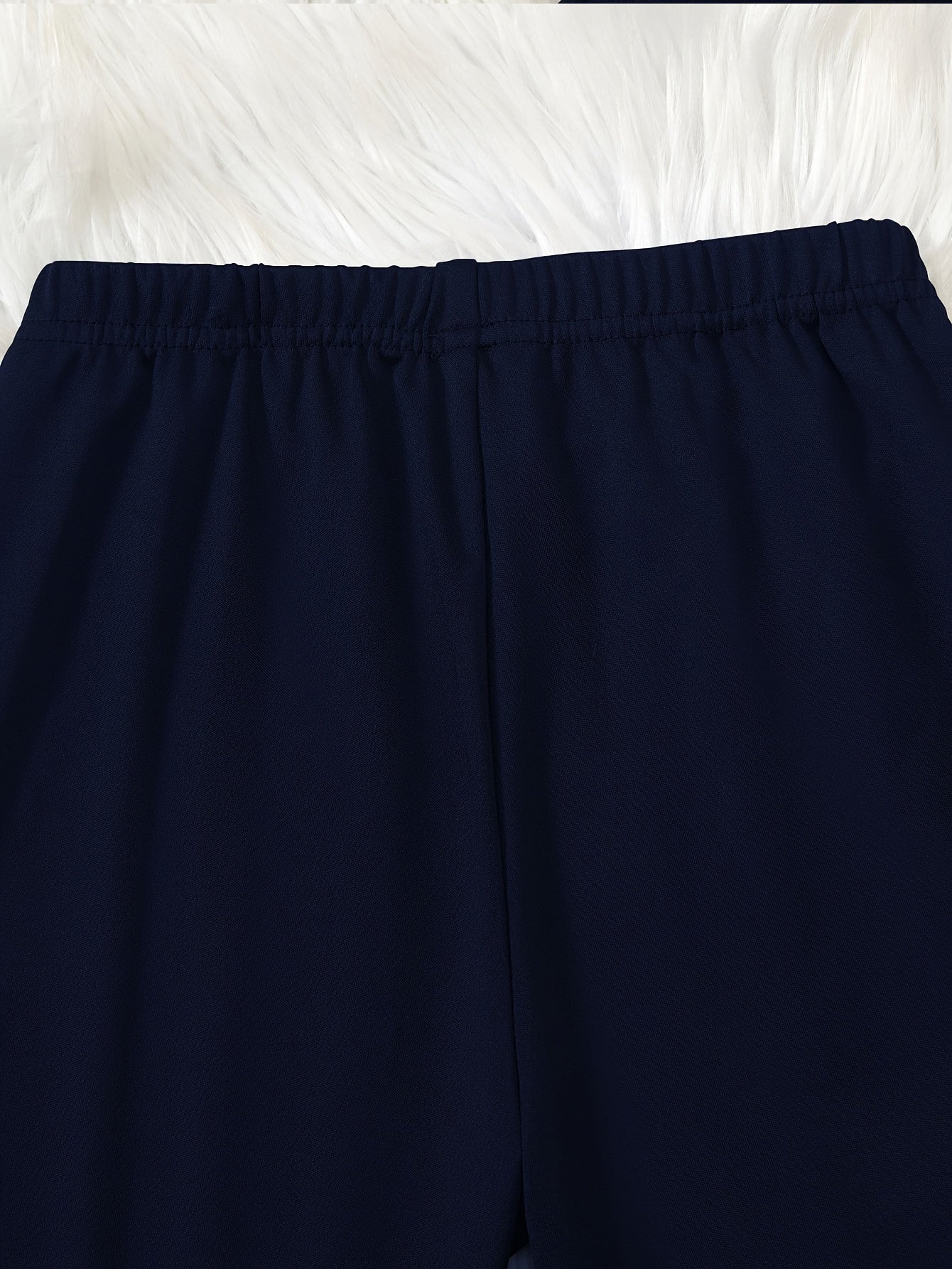 ' Autumn and Winter Fashion Casual Elegant Two-Tone Shirt with Golden Chain Detail, Ruffle Hem Top Paired with Flared Pants, Machine Washable Formal and Casual Wear Suitable for School, Parties, Family Events, Travel Vacation