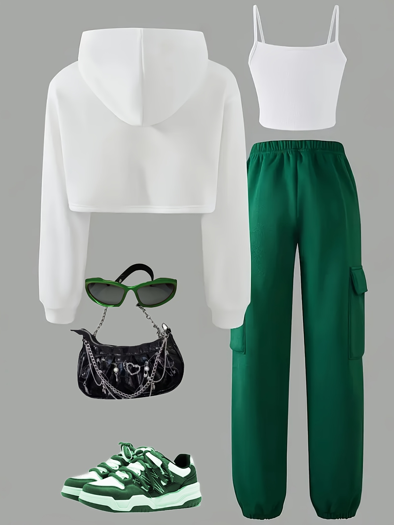 Autumn-Winter New Fashion Sweet Cool Street Letter Print Long Sleeve Hooded Crop Sweatshirt + Tank Top + Refined Pocket Pants Set; Perfect for Fall Outings, Travel, Parties & Casual Wear - Medium/Large Girls' Three-Piece Outf
