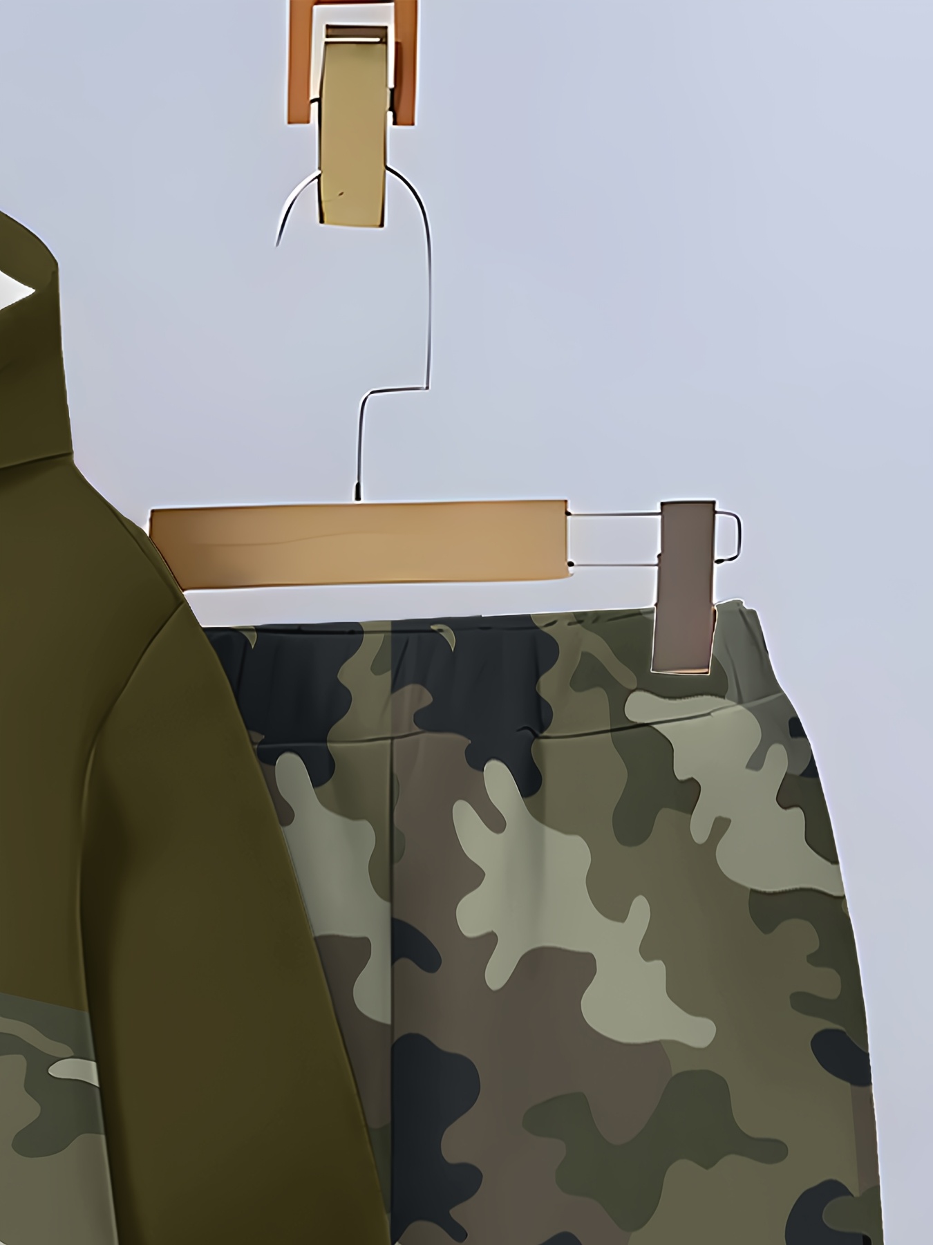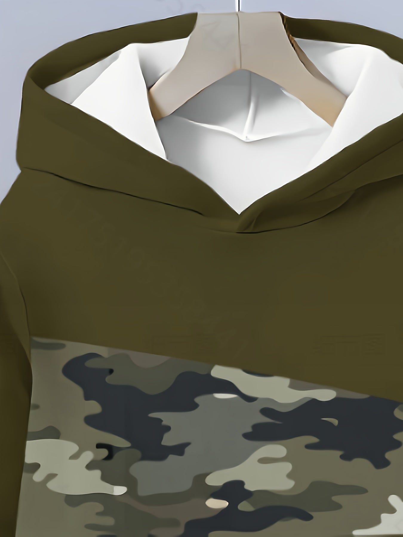 Boys' 3D Printed Camo Hoodie & Pants Set - Olive Green & Black Camouflage Long Sleeve Pullover with Kangaroo Pocket, Elastic Waistband Joggers, Perfect for Outdoor Play & Casual Wear, Fall/Winter Collection, Boy Hoodie, Playf