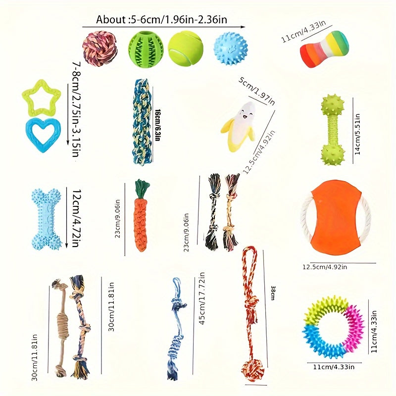 Pawsome Pals 6/12pcs Interactive Dog Toy Set - Durable Cartoon Pattern Fabric Chew Toys for All Breed Sizes - Teeth Cleaning & Training Play Set with Knot Toys, Squeakers & Balls