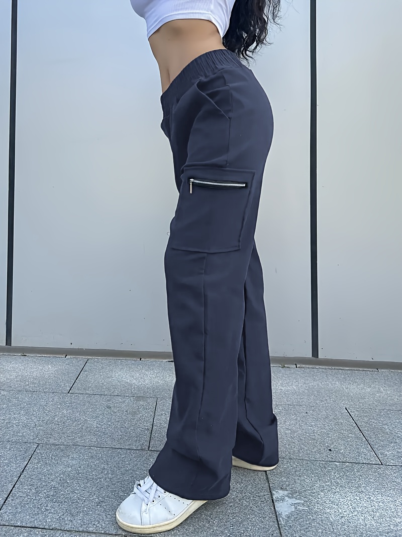's and Girls' Straight-Leg Cargo Pants, Y2K Streetwear Casual Trousers with Large Zippered Pockets, Elastic Waistband, All-Season Polyester, Perfect for Outdoor Wear, Perfect for Outdoor
