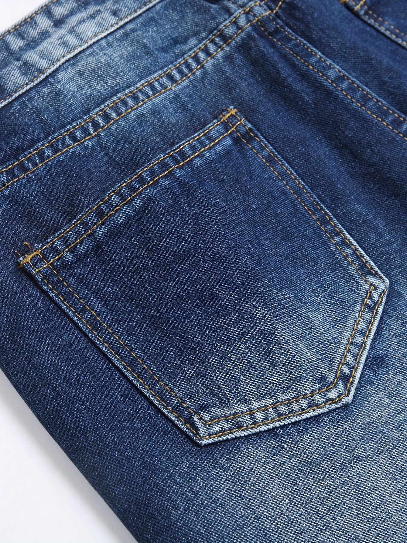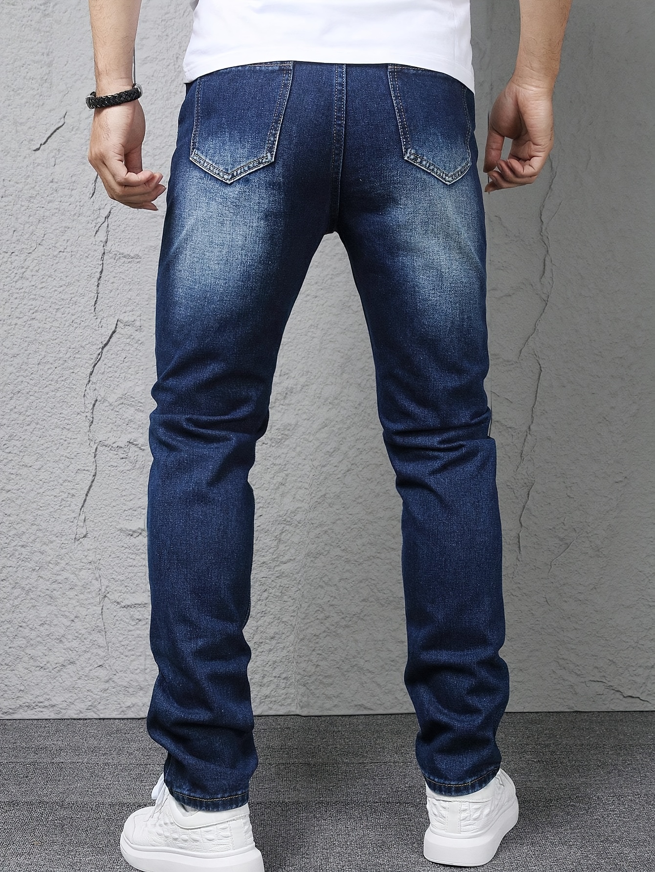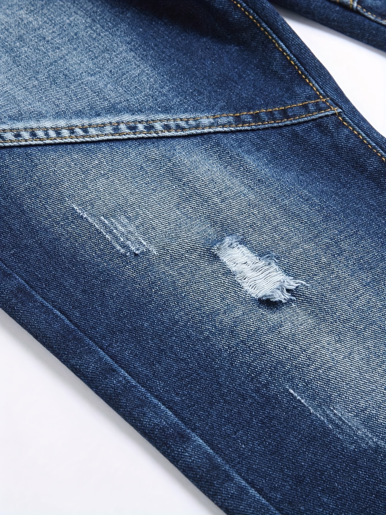 's & Teen Boys' Dark Blue Distressed Ripped Slim Straight Leg Jeans - Heavyweight 100% Denim, Mid-Rise Inverted Zipper Closure, Machine Washable Casual Pants for Casual Attire & Layering (All-Season) - Youthful Vintage Style