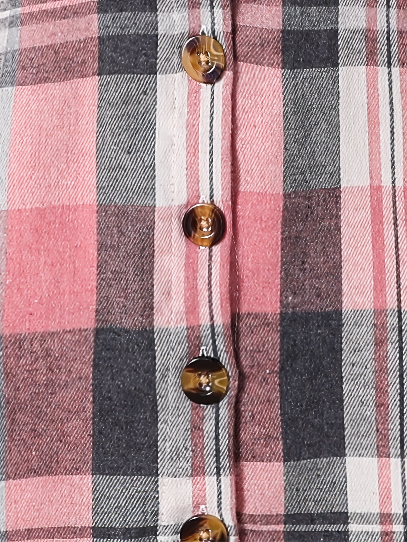 Teen Girls 13-16 Years Plaid Dress - Pink & Grey Tartan Button-Front Midi Length Long Sleeve Dress for Scottish Dance, Casual Outfits & Casual Attire, for Teenager, Dresses For Teenage Girls With Sleeves, Teen Clothes Girls D
