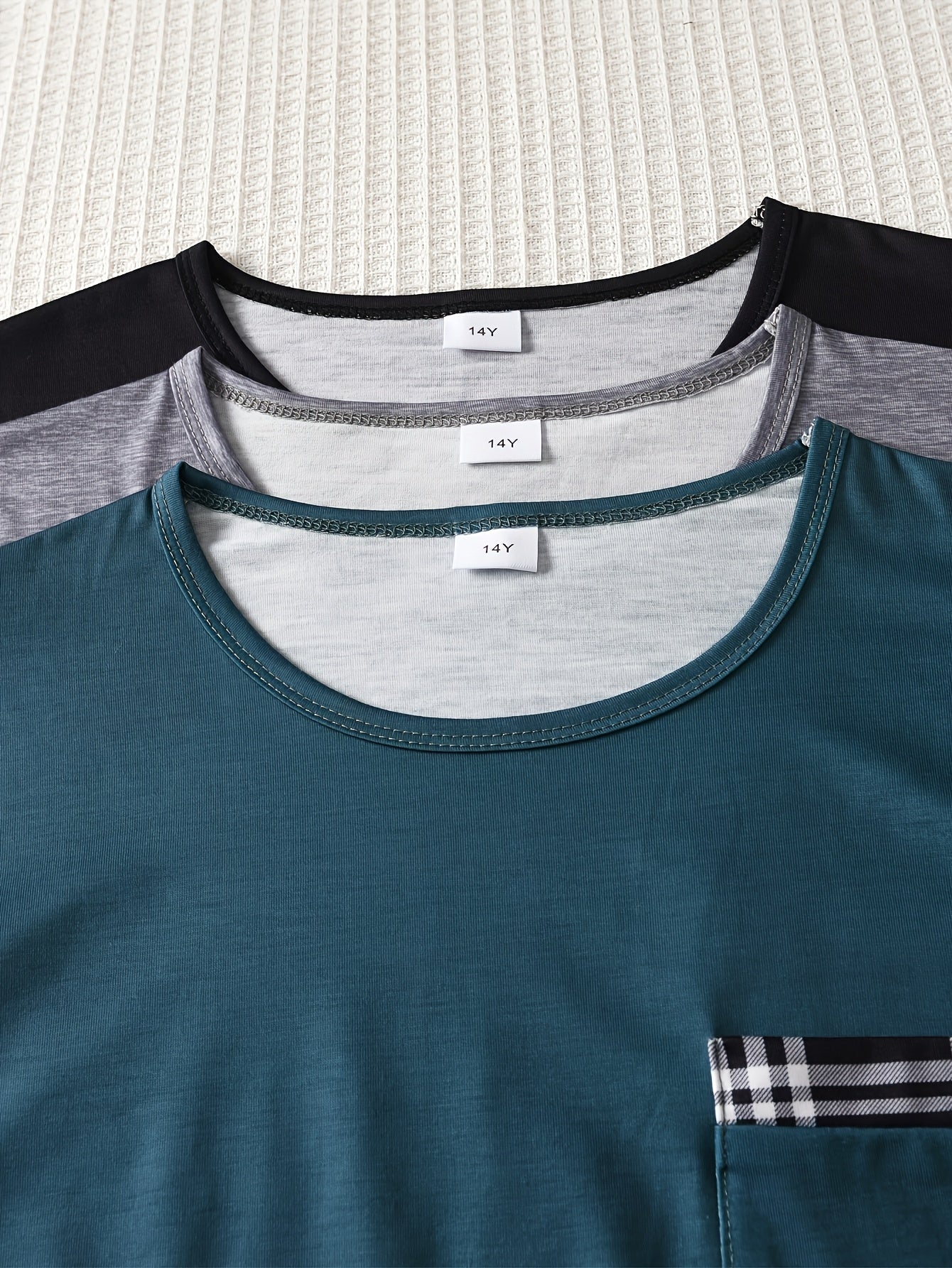 [Teenager Fashion Pajamas Set] Random 2pcs Set of The 2025 New Teenager's Fashion Trendy Simple Pajamas in Black, Gray, And Green Plaid with Long Sleeves And Long Pants, a Comfortable And Casual Homewear Outfit., For Teenager