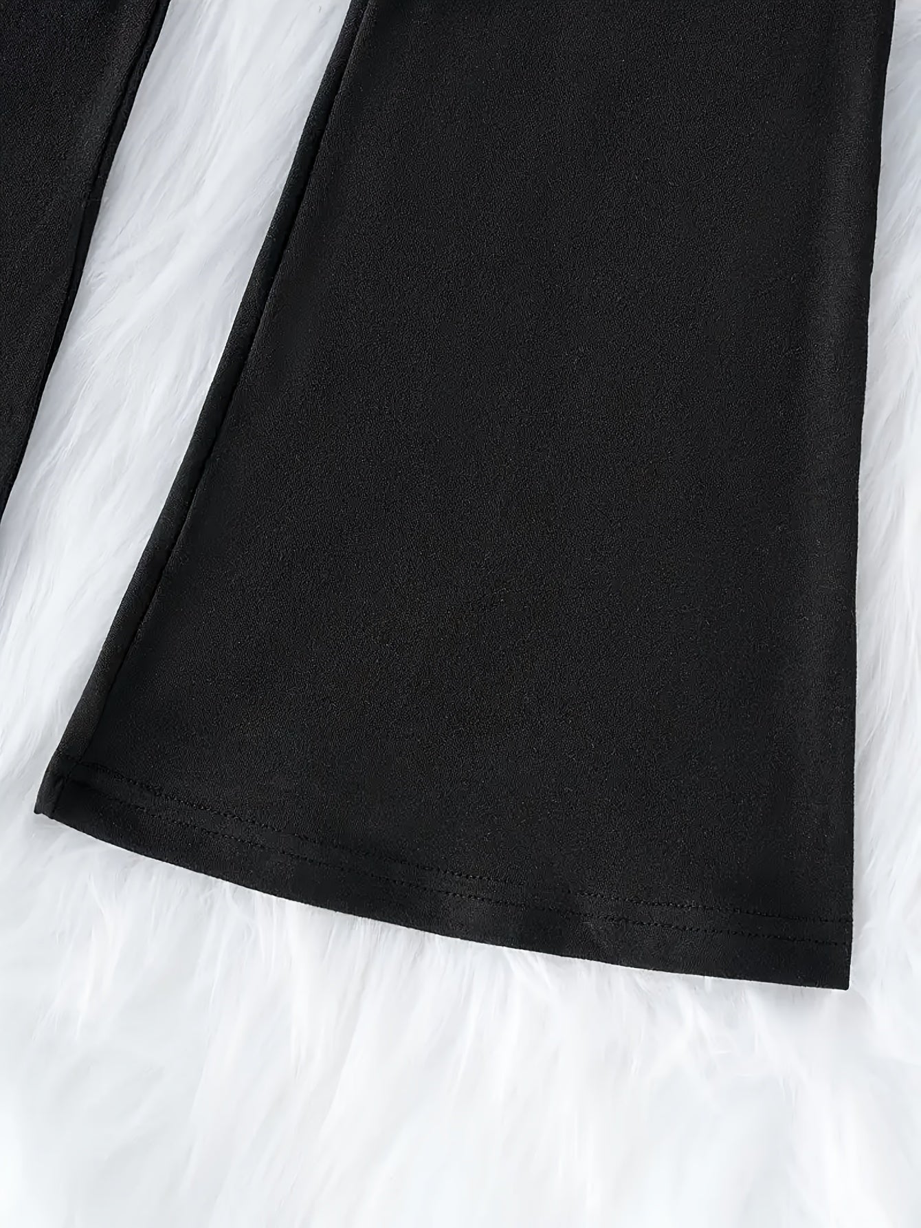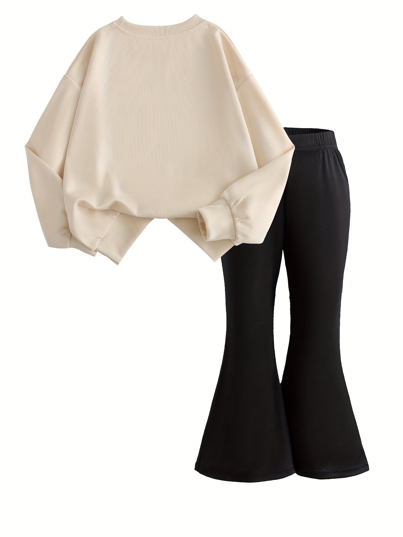[Trendy Autumn Suit for Kids] 2pcs Trendy Autumn Suit for Kids | Girls' Fashion Sweatshirt + Flare Pants Style | Heart Print Design | Urban Stroll + Fashionable Look | Perfect for Outdoor